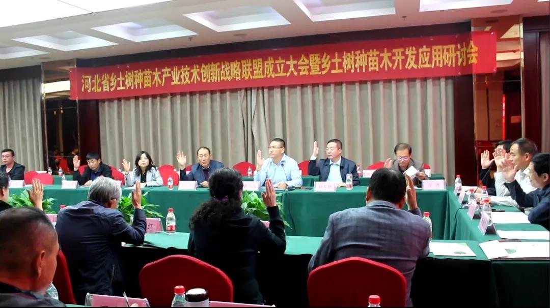 會議由河北省林木種苗協會秘書長李書戰主持。會議表決通過了河北省鄉土樹種苗木產業技術創新戰略聯盟第一屆理事會成員單位建議名單、第一屆理事會成員建議名單、第一屆專家咨詢委員會成員建議名單和第一屆秘書處成員建議名單。創新戰略聯盟組織協調單位為河北省林木種苗協會,理事長單位為河北一森園林綠化工程股份有限公司,副理事長單位為河北農業大學(園林與旅游學院)等5家單位,理事單位為石家莊市東潤園林綠化有限公司等6家單位。創新戰略聯盟顧問由河北省林木種苗協會會長汪民擔任,理事長有河北一森園林綠化工程股份有限公司董事長耿軍林擔任,專家咨詢委員會主任由河北農業大學教授黃大莊擔任,副主任由河北省農業大學教授楊敏生和河北省林業科學研究院正高級工程師王玉忠擔任,秘書長由一森園林公司經理曹騰擔任,副秘書長由一森園林公司經理王素位、經理金波擔任。