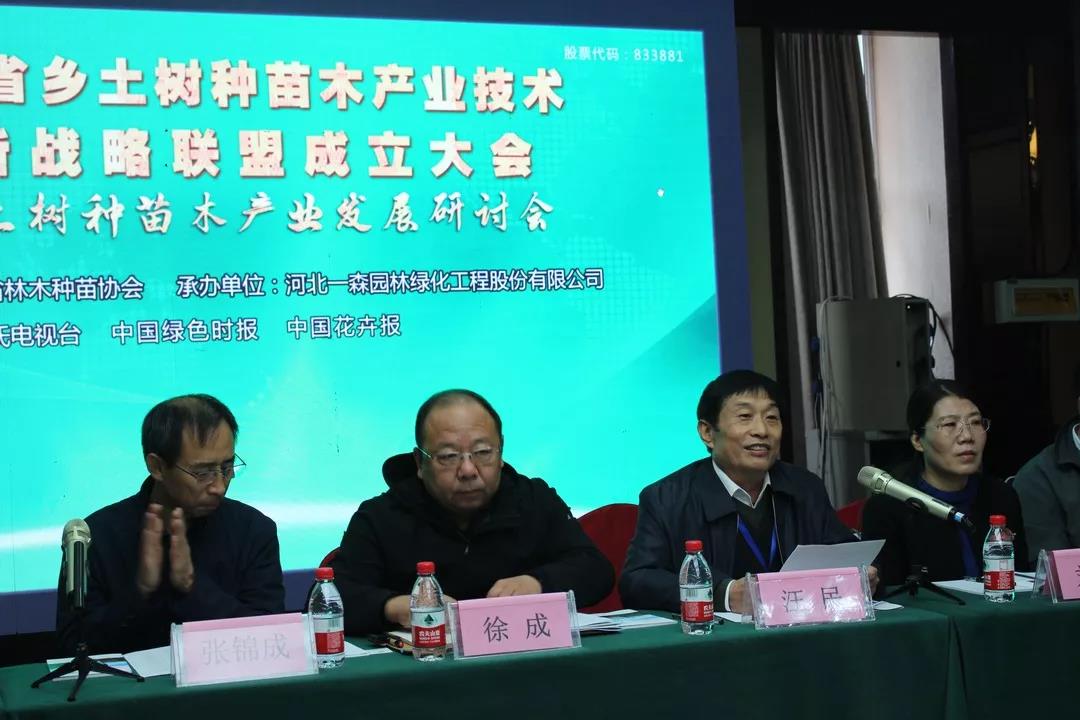 省市縣科技部的有關領導、河北農業大學園林與旅游學院副教授孟慶瑞、霸州市霸州鎮綠瓏苗圃經理高建設、保定筑邦園林工程有限公司副總經理高龍霄等13家聯盟成立單位及省林木種苗協會專家委員會專家參加了會議。會上組織全體與會人員首先觀看了一森園林企業宣傳片,省科技廳農村處徐成處長和河北省林業和草原局國有林場與種苗管理處處長張錦成為河北省鄉土樹種苗木產業技術創新戰略聯盟成立揭牌。
