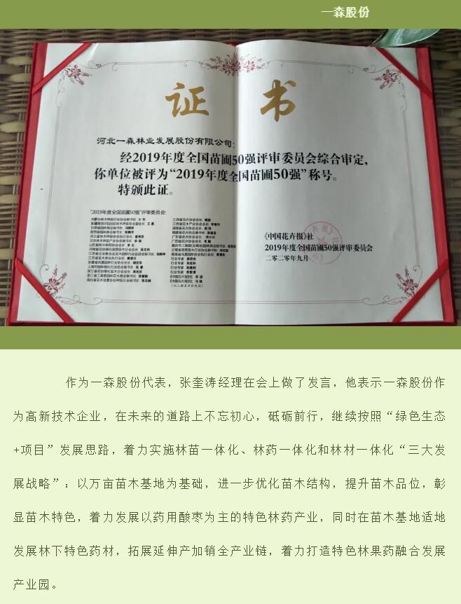 河北一森林業發展股份有限公司創立于2012年,2015年10月在新三板掛牌上市,2017年5月進入創新層,是河北省在新三板掛牌上市的林業類企業。股票簡稱:一森股份,股票代碼:833881。...