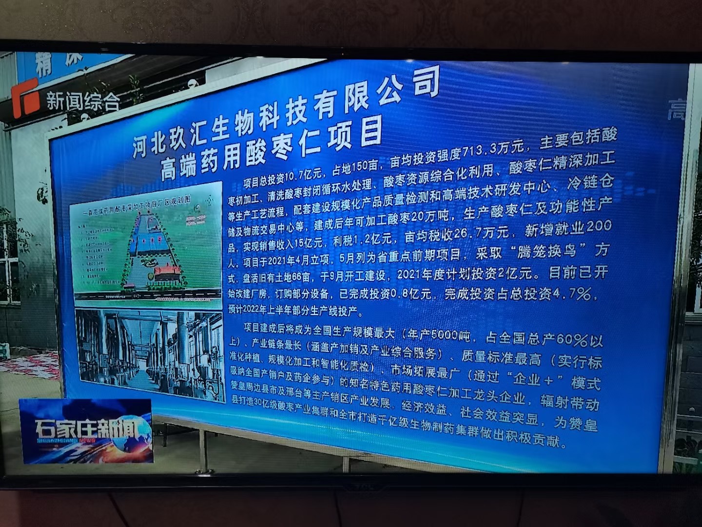 △石家莊電視臺(tái)新聞聯(lián)播節(jié)目報(bào)道一森高端藥用酸棗深加工項(xiàng)目。20211015日,石家莊電視臺(tái)新聞聯(lián)播節(jié)目對(duì)一森高端藥用酸棗深加工項(xiàng)目進(jìn)行了詳細(xì)報(bào)道,節(jié)目中王維勝總經(jīng)理詳細(xì)介紹了藥用酸棗深加工項(xiàng)目的工藝、產(chǎn)品及發(fā)展前景,項(xiàng)目將圍繞打造酸棗行業(yè)龍頭,推進(jìn)產(chǎn)業(yè)升級(jí)集群,助力鄉(xiāng)村產(chǎn)業(yè)振興。