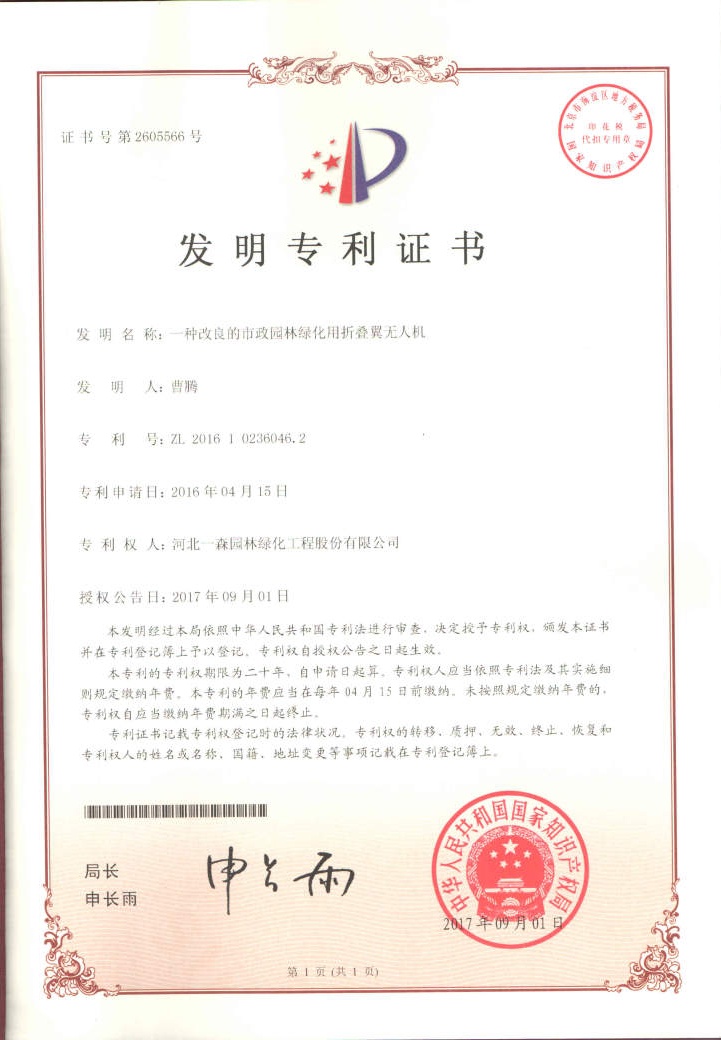 “一種改良的市政園林綠化用折疊翼無人機”發明專利