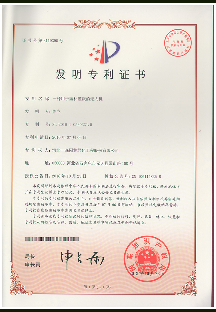 “一種用于園林防火監控的智能監控設備”發明專利證書
